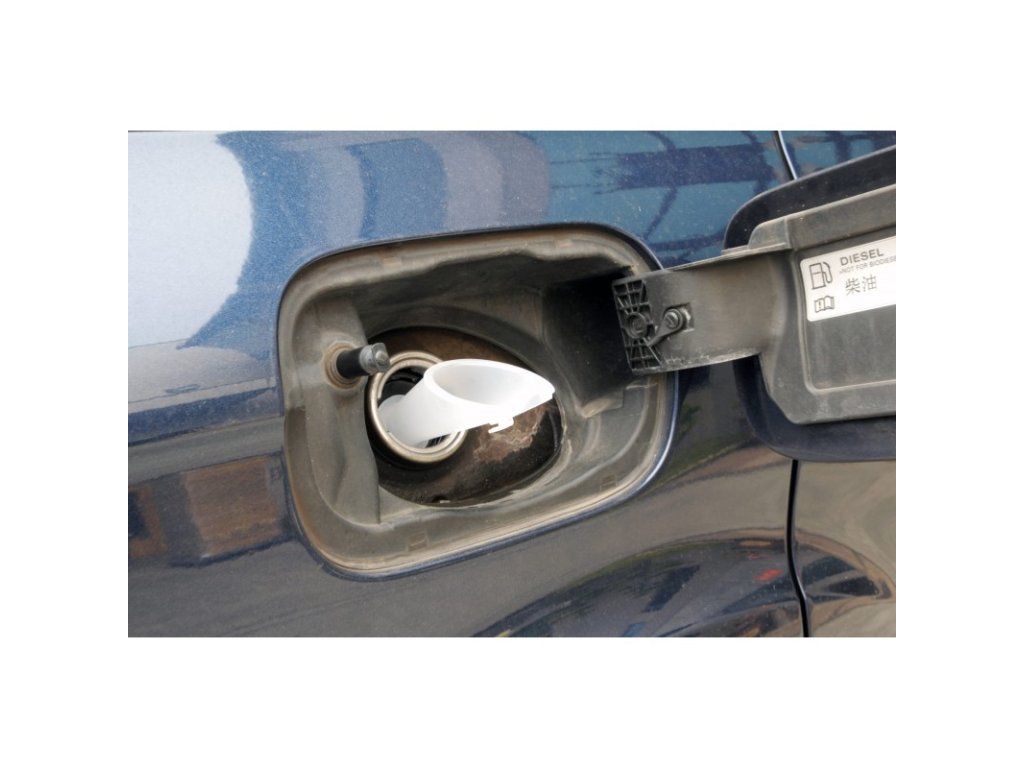 Lievik so špeciálnym tvarom a povrchovou úpravou určený na plnenie nafty