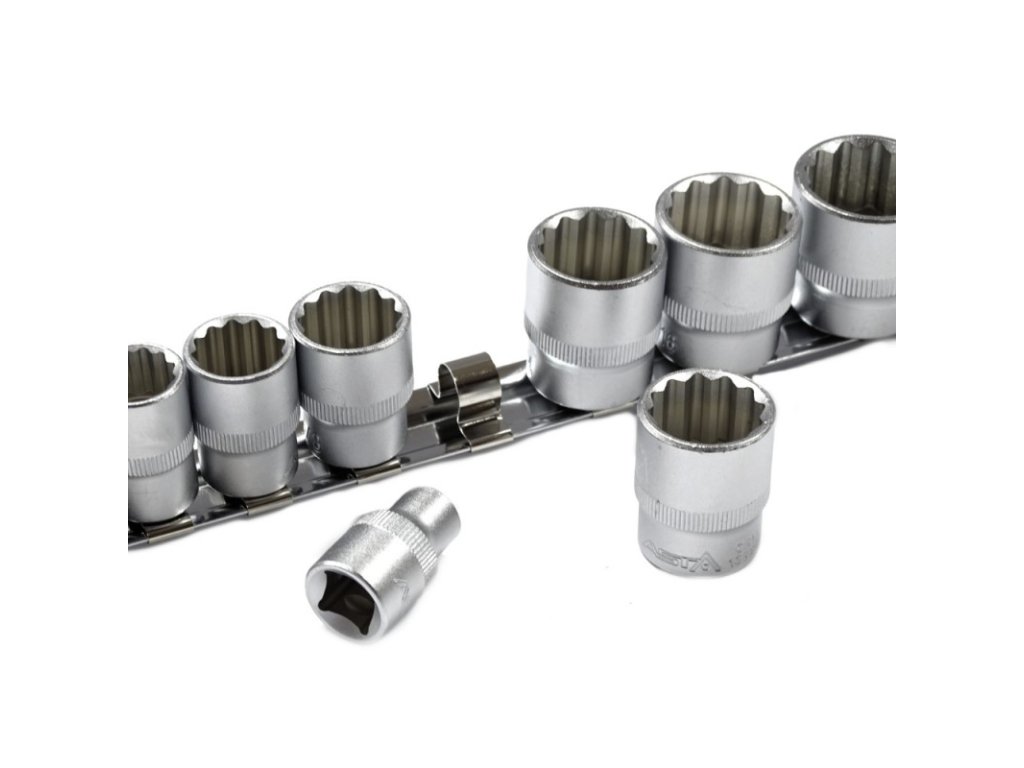 Calové hlavice 12-hranné 5/16'-15/16', sada 11ks. 3/8' na lište, Asta