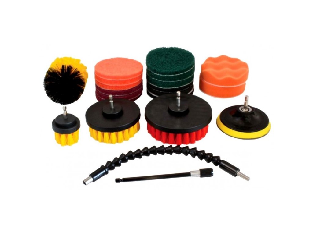 Čistiace kefy a huby, pripojenie na vŕtačku, 21 ks, 1/4' predĺženie