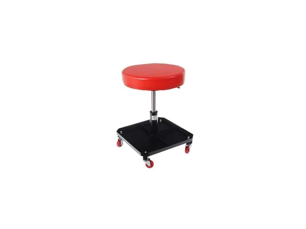 Dielenský taburet s mäkkým, čalúneným sedákom, ktorého stabilitu zaisťujú 4 kolieska