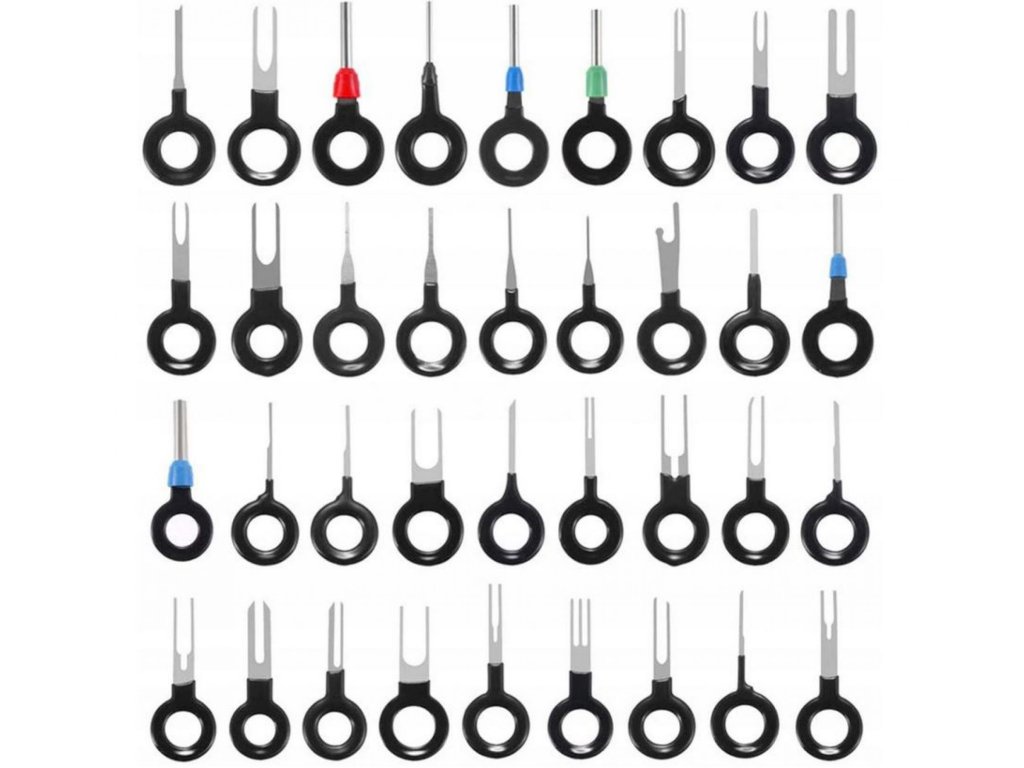 Súprava 38 kľúčov pre demontáž kolíkov a konektorov. Rukoväť potiahnutá gumou, ktorá zvyšuje komfort práce, je nepostrádateľným vybavením každého elektrikára / elektroniky. Vhodné pre úpravy a opravy elektrických inštalácií v automobiloch, motocykloch, lodiach atď. Funguje dobre aj doma pri opravách domácich spotrebičov / RTV / počítačov a ďalších ... ergonomický tvar umožňuje ľahké vybratie čapov. Práca možná aj na zlomenom kolíku alebo ohnutej spojovacej doske nepoškodí kolíky - vďaka najlepšej konštrukcii na trhu vychádzajú prakticky samy.