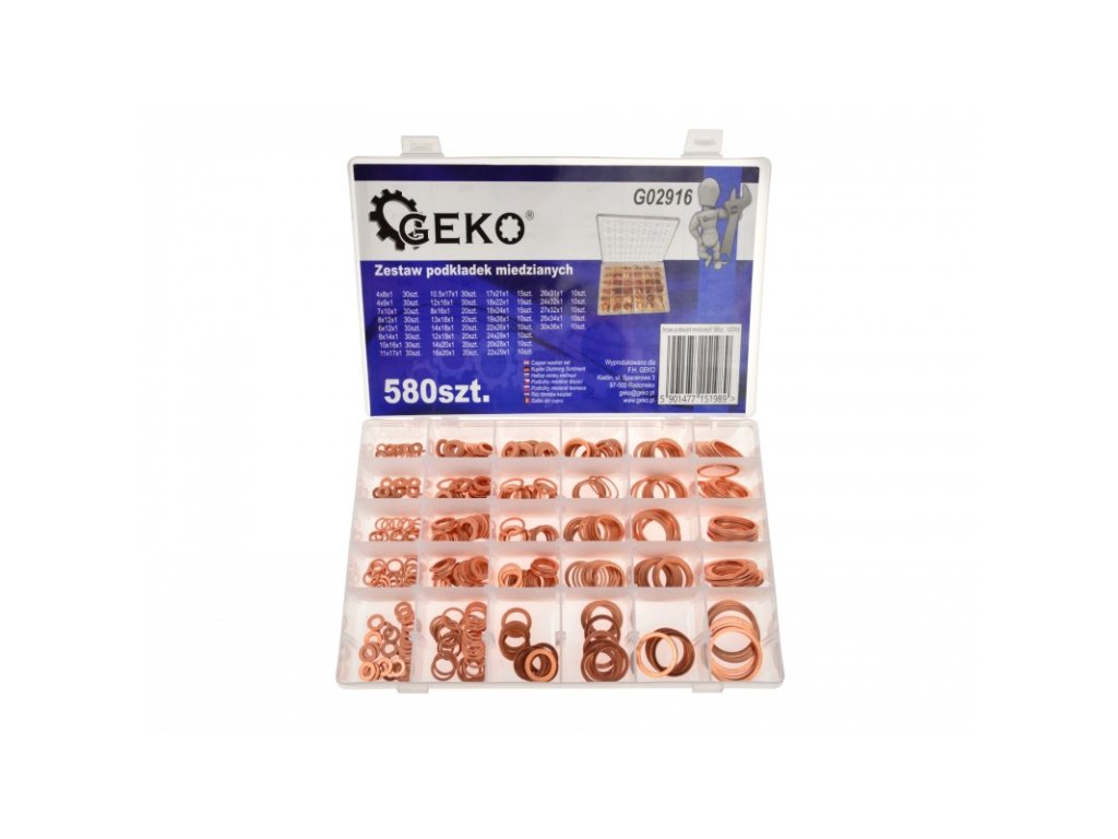 Súprava 580 medených podložiek v 29 rôznych veľkostiach