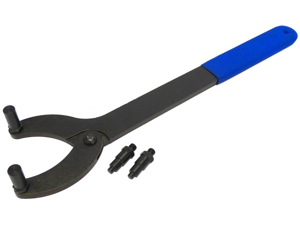 Nastaviteľný kľúč určený na napnutie a nastavenie polohy zotrvačníka a kľukového hriadeľa ŠKODA VW AUDI SEAT a je tiež ideálny na udržanie napätia pri odskrutkovaní remenice a utiahnutie spoja, ktorý drží remenicu.