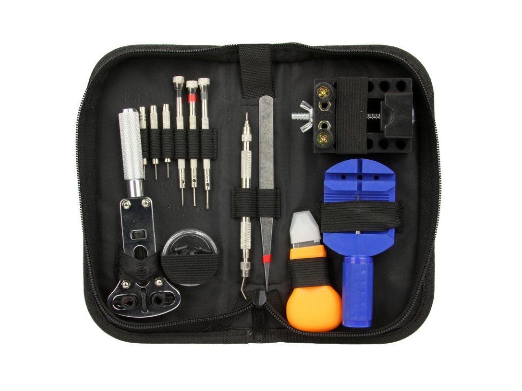 Sada hodinárskeho náradia: Kľúč na opravu hodiniek + XXL puzdro