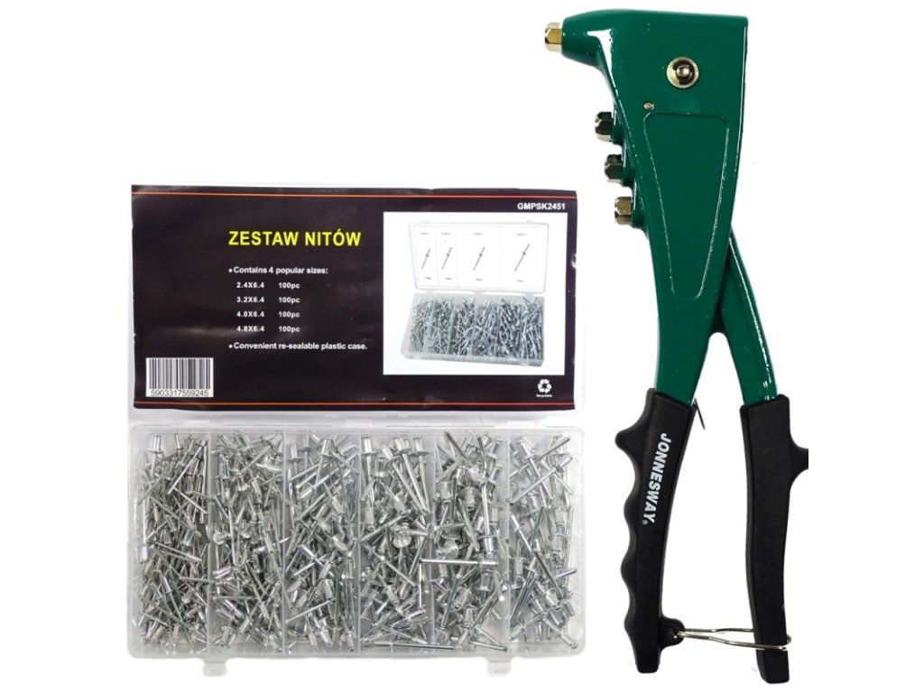 Sada ručného nitovača 2,4-4,8 mm + nity 400 ks Jonnesway ZNITJON2