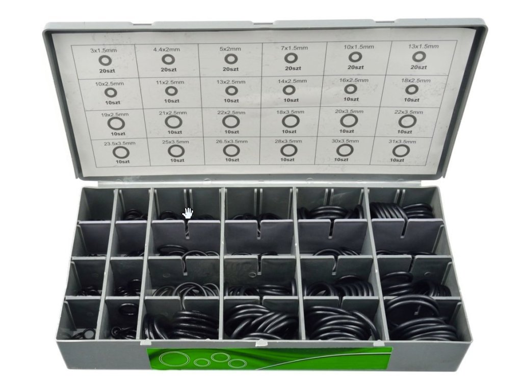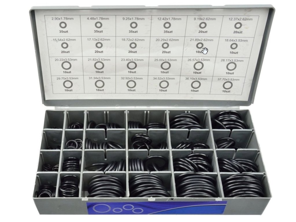 Sada 900 kusov O-krúžkov s triedičkou s rukoväťou a možnosťou montáže na stojan