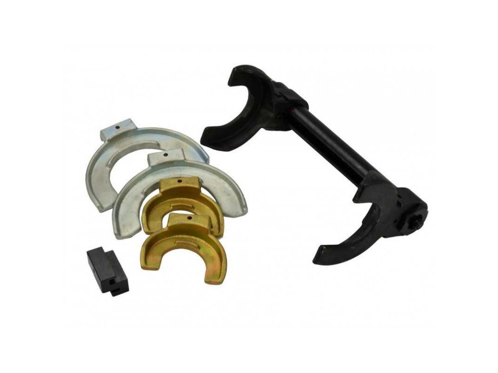 nastavenia: 80 - 115 mm, 110 - 150 mm 140 - 19 dĺžka: 305 mm Priemer objímky - 45 mm Maximálny tlak sťahováka: 1500 kg Prídavný kryt pre prácu s kužeľovými pružinami Hmotnosť produktu: 18 kg