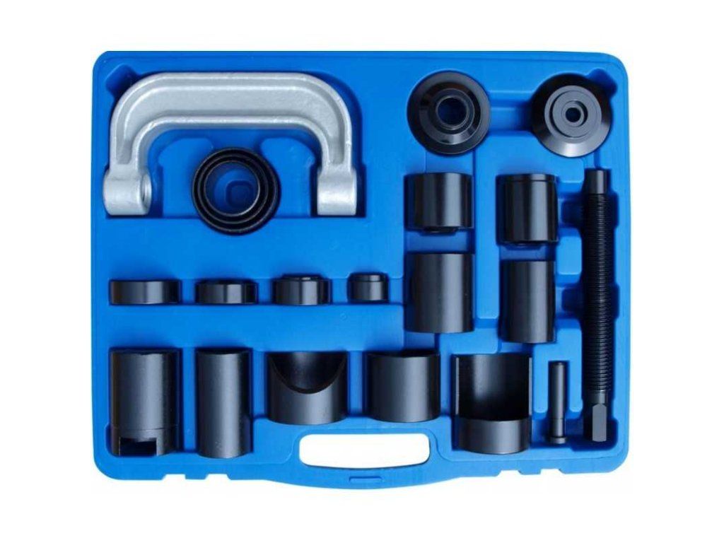 Sada sťahovákov pre montáž a demontáž ložísk v čapoch riadenia a puzdrách zavesenia. Vrátane skrutkového lisu a adaptérov. Všetko v elegantnom kufri