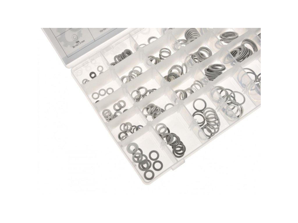 Súprava 300 podložiek z hliníka v 30 rôznych veľkostiach.