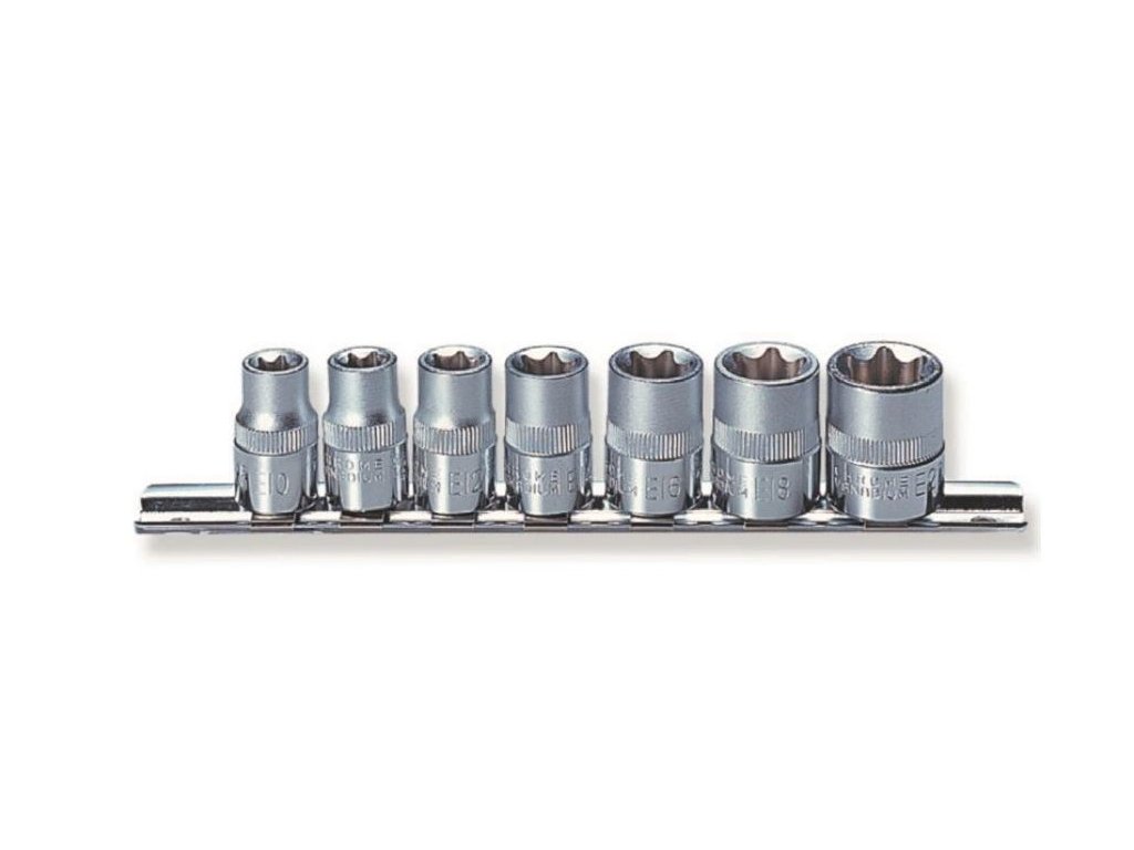 7 nástrčných kľúčov TORX-E 3/8": - E10, E11, E12, E14, E16, E18, E20.