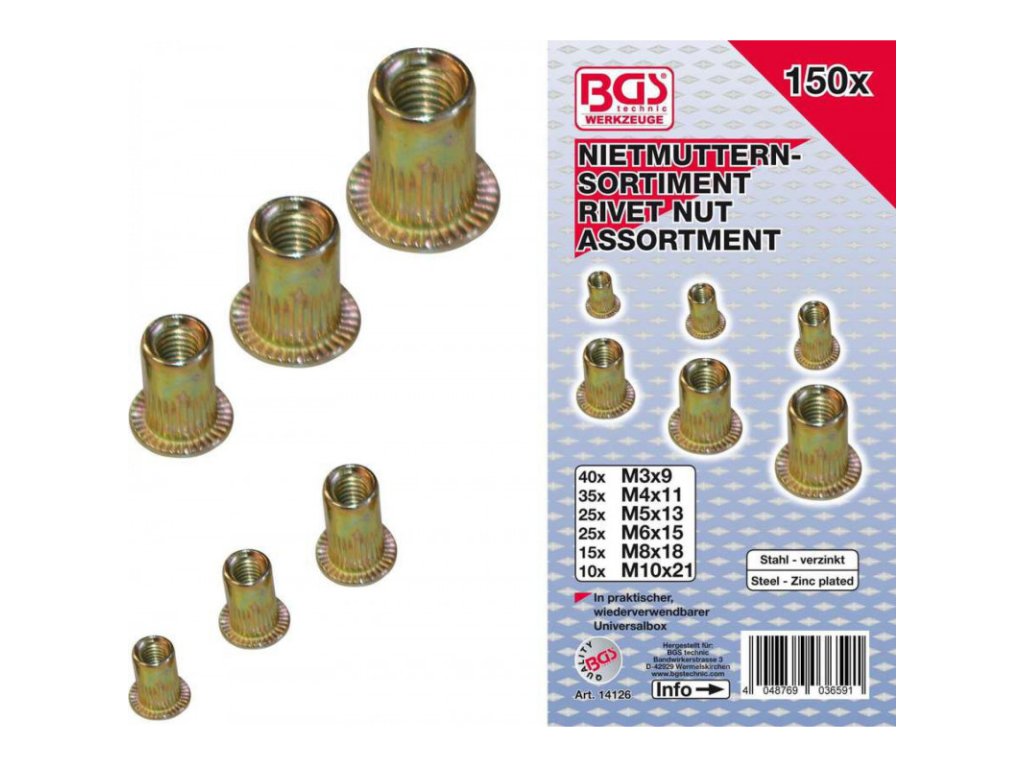 Súprava nitovacích matíc M3-M10, 150 ks, BGS-Technic Germany