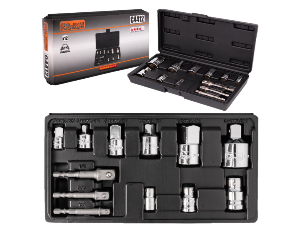 Súprava redukcií a adaptérov 1/4' 3/8' 1/2' 12 ks, Richmann C4412