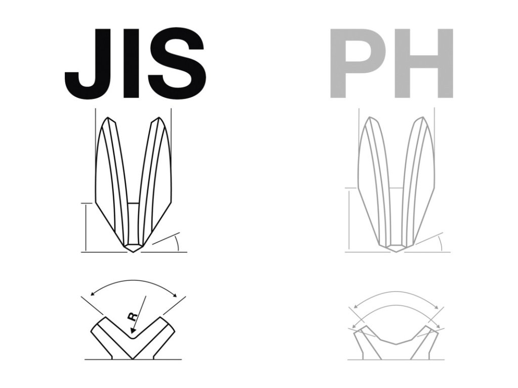 • Pre skrutky Phillips podľa japonskej priemyselnej normy (JIS),
