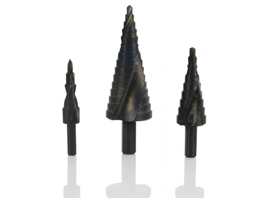 Kvalitné stupňovité vrtáky - kužeľová špirála z kvalitnej rýchloreznej ocele HSS4241