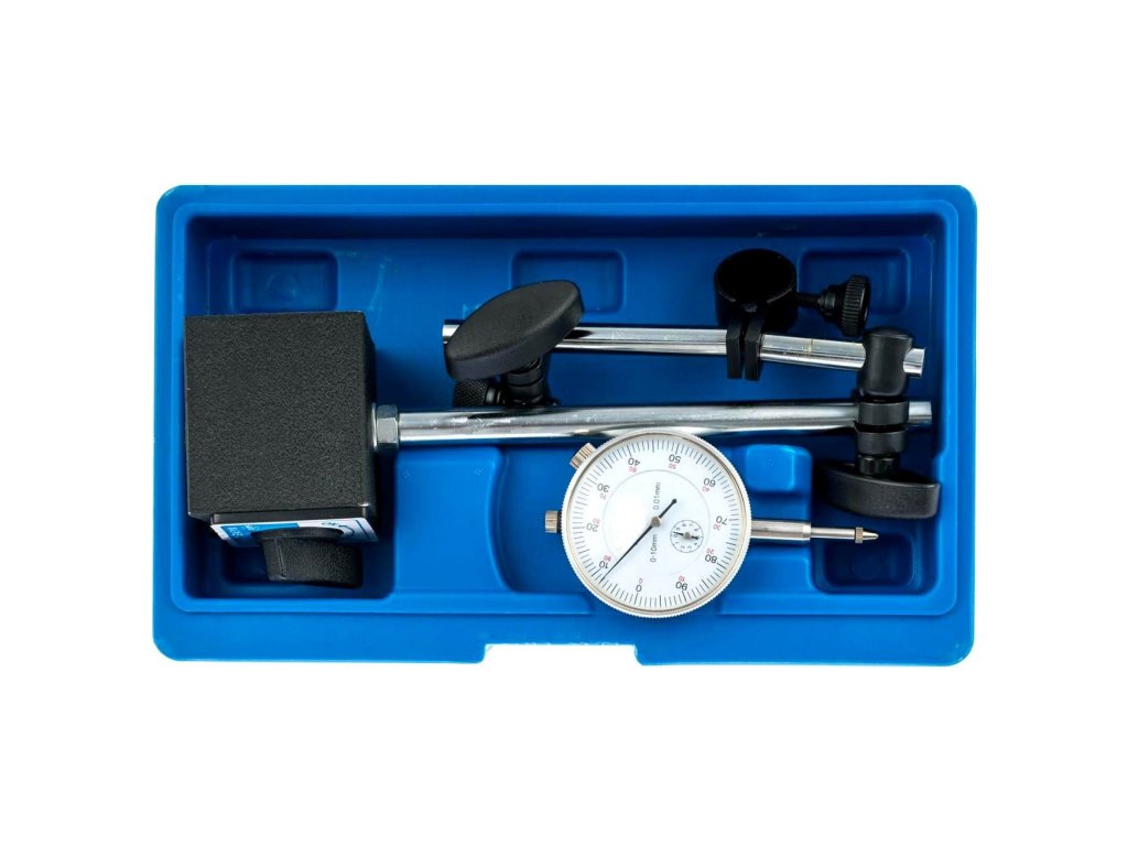 Tester s magnetickým statívom na meranie geometrie brzdových kotúčov, bubnov, rozvodov atď.