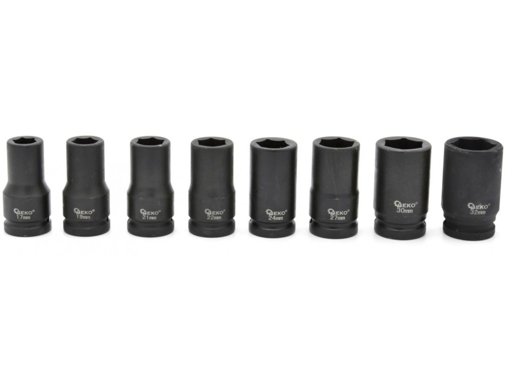 Úderové hlavice 17-32mm 3/4'', sada 8ks rázových nástrčných kľúčov