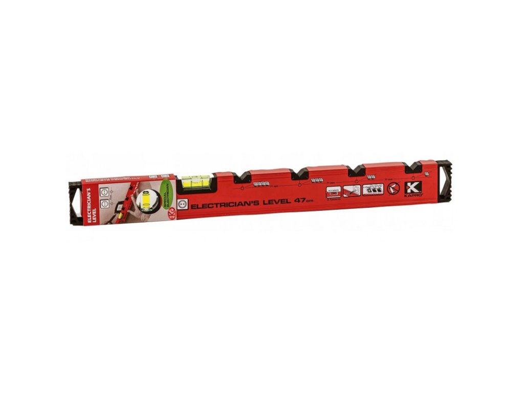 Vodováha s dĺžkou 48 cm od spoločnosti Kapro, jedného z najlepších svetových výrobcov meracích prístrojov. Jedná sa o presný nástroj odporúčaný na profesionálne použitie, spĺňajúce očakávania náročných užívateľov. Perfektný pre všetky elektrické práce vďaka použitiu 4 značiek umiestnených v rozostupoch 71 mm umožňujúcich presné umiestnenie zásuviek.